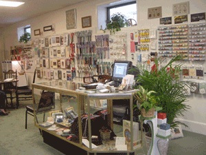 embroidery supplies, crochet thread, pillow ticking, gifts .