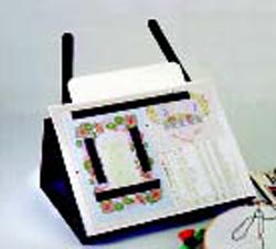 Portable chart holder that will hold a variety of books and patterns. Includes collapsible stand made of durable black plastic, a freestanding magnetic board and 4 magnetic strips. Elastic page holders keep pages open and secure; adjustable supports hold oversize charts upright.
